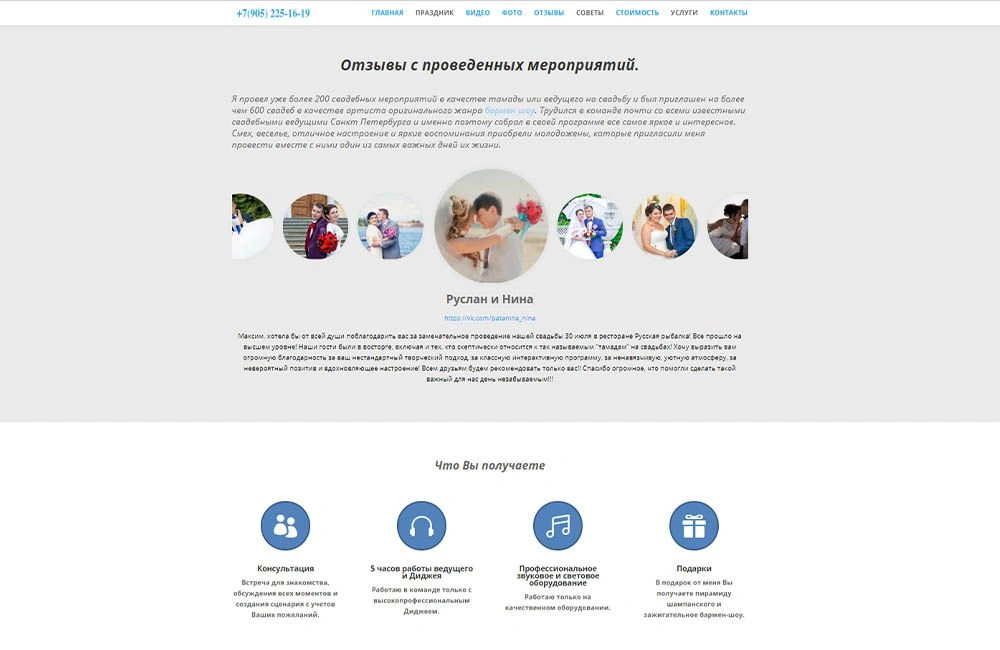 • Сайт для ведущего на свадьбу